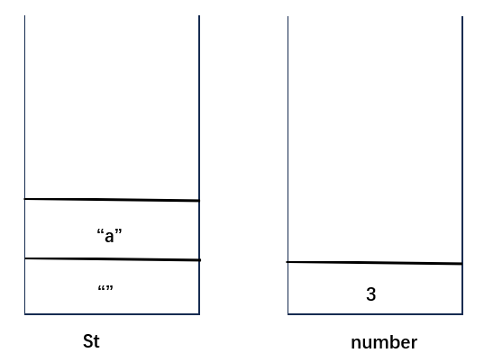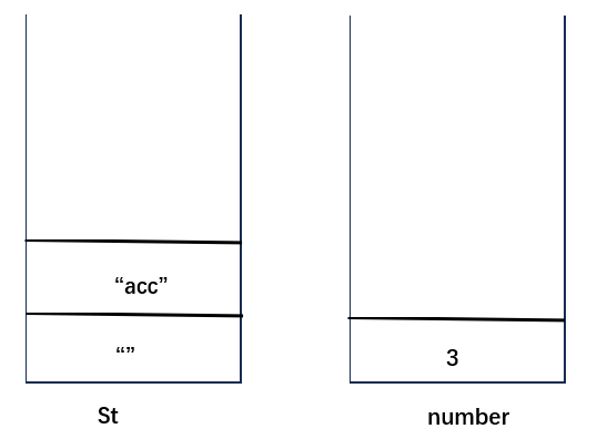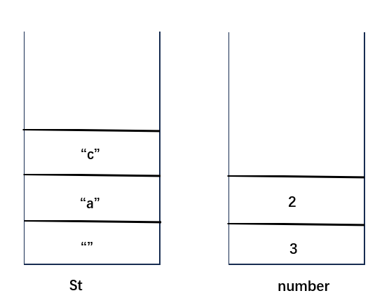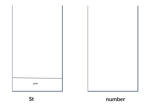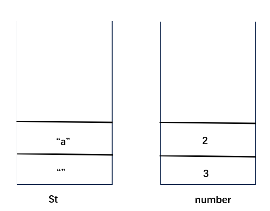 (1)定义两个栈,栈number用于记录数字,栈St用于记录字符串,向St栈中压入空字符串(防止出现s='a......'这种情况),此时两个栈的状态如下: