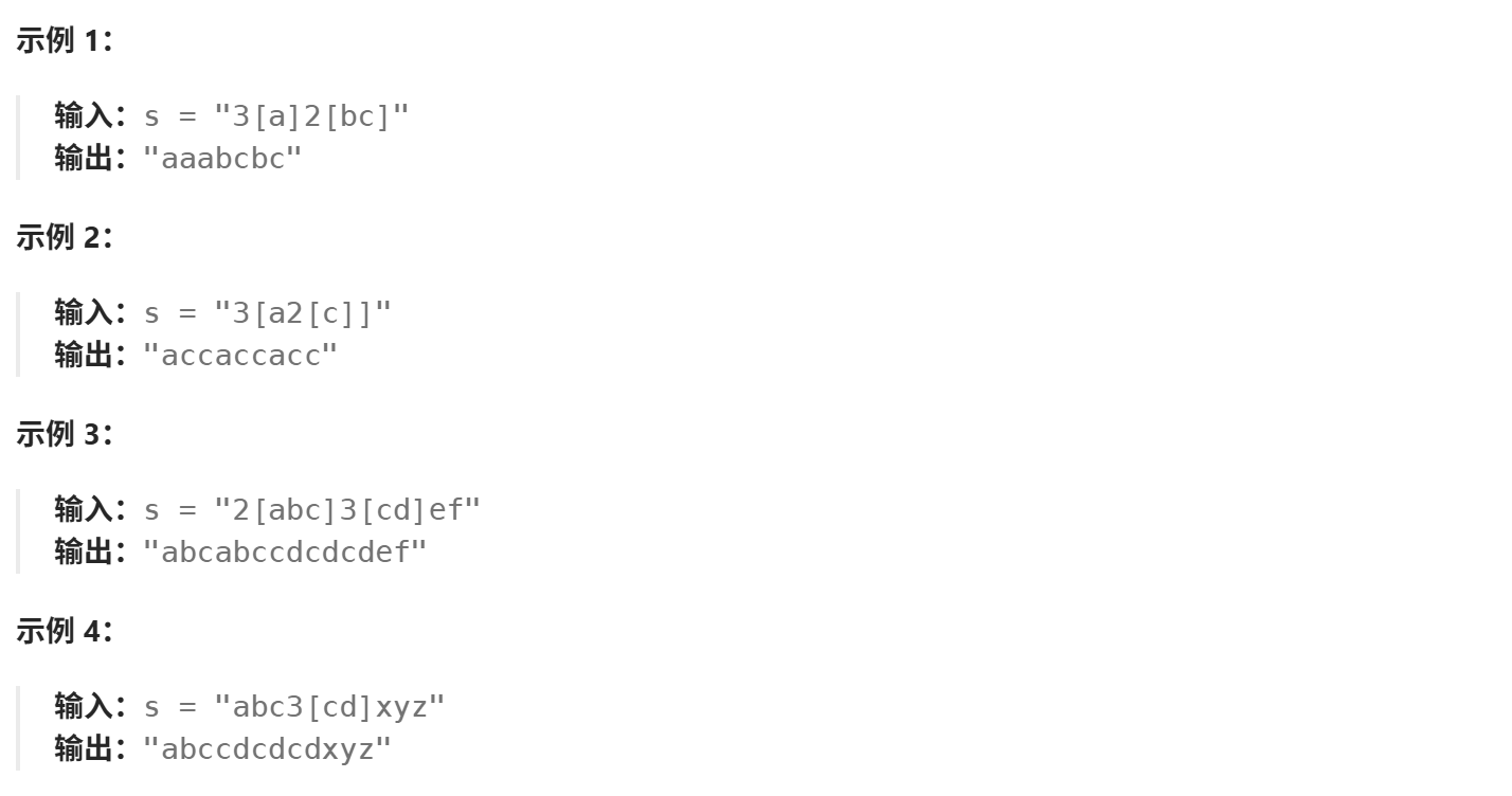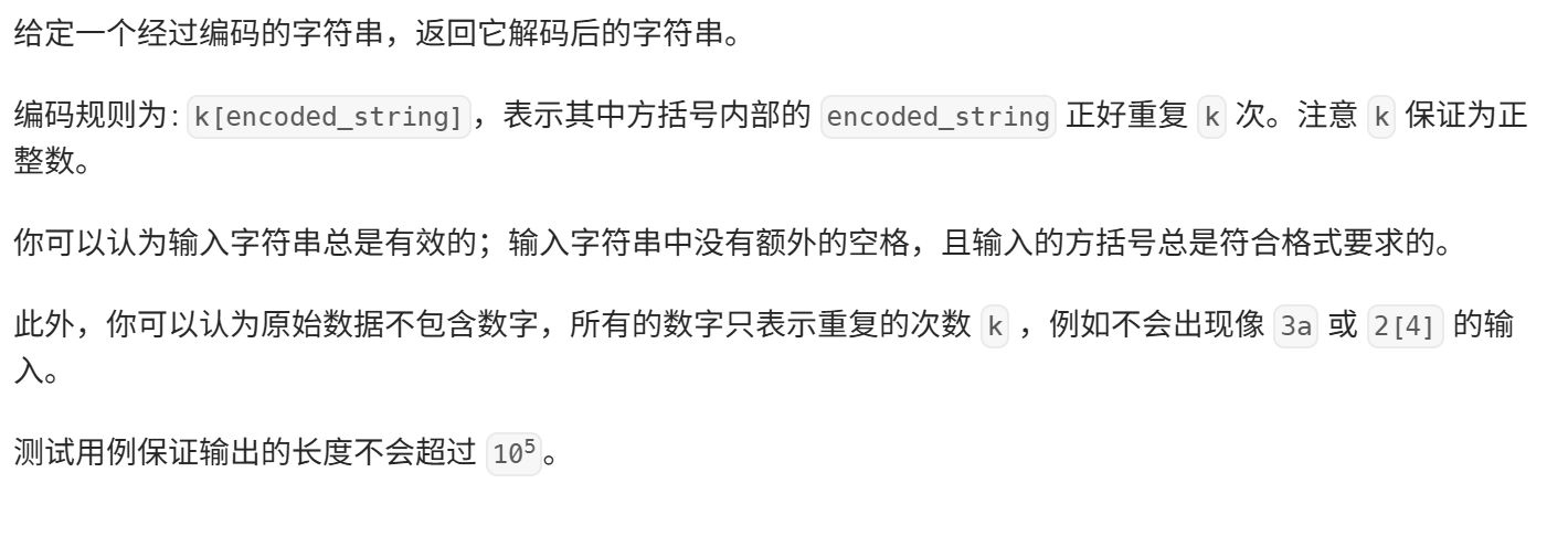 s遍历完后,St的栈顶字符串即为解码完成的字符串。