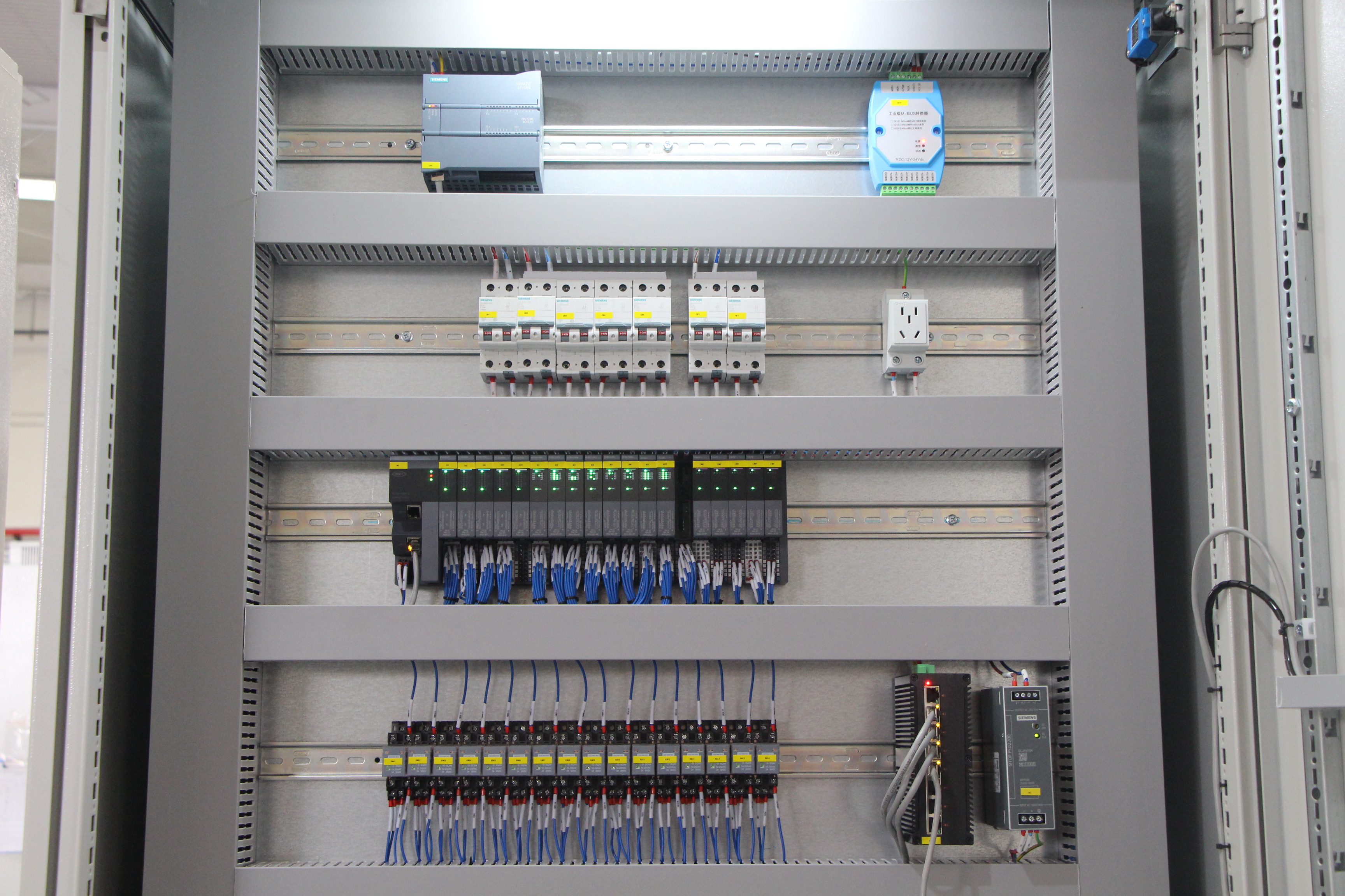 PLC是整个控制系统的“大脑”,负责处理所有输入信号、执行控制逻辑,并发出控制指令。项目选用西门子S7-1200系列PLC作为主站,其运算能力需满足复杂的PID调节(如循环泵变频、调节阀开度)和多设备联动逻辑的要求,并通过明达技术MR30-FBC-PN耦合器连接各I/O模块,MR30各个I/O模块负责现场信号采集与输出执行。