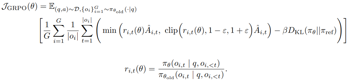 原始 GRPO 使用 样本级损失(sample-level loss):先在每个样本内按 token 平均,再跨样本汇总,最终每个样本权重相同。