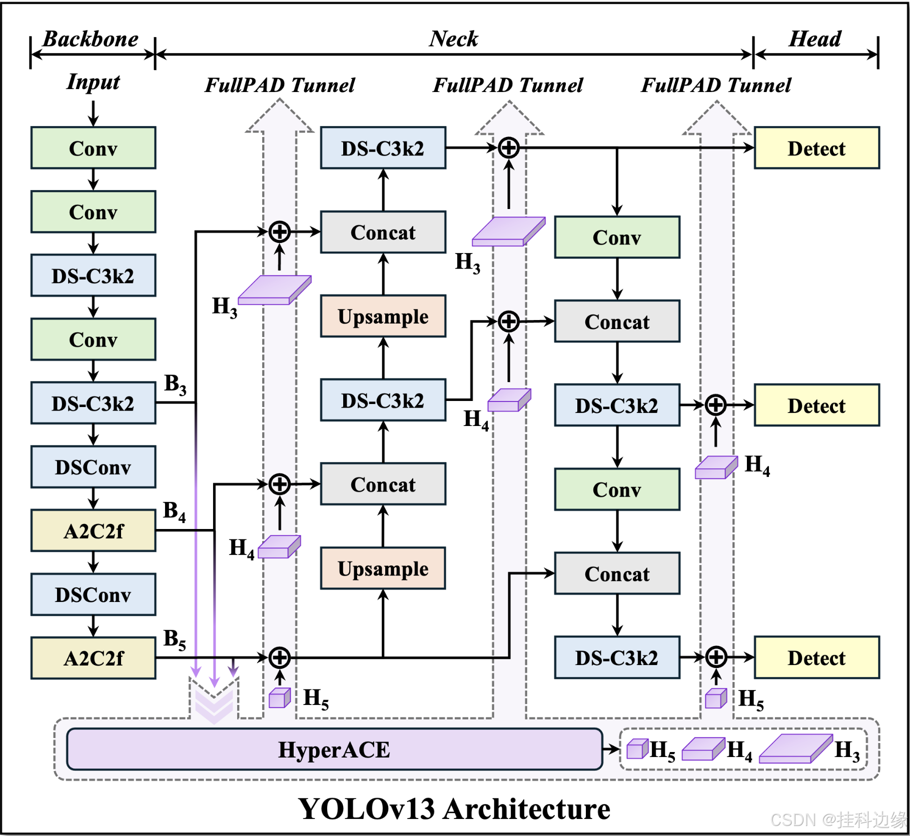 图 3:YOLOv13 关键模块(HyperACE 超图卷积 + DS‑C3k2 轻量化块)