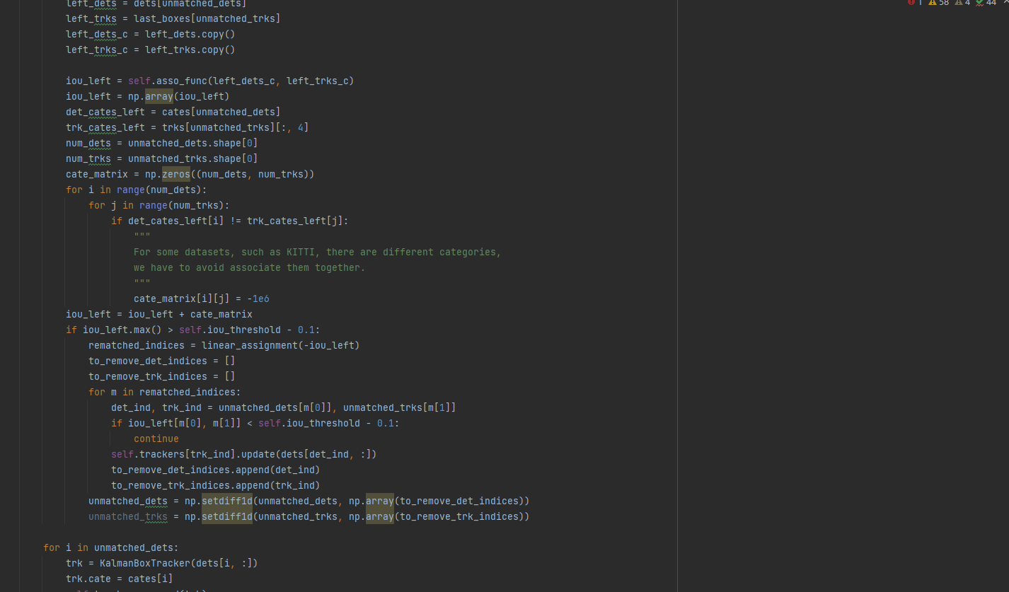 | 统一的代价矩阵 | 将 IoU‑based 运动距离 与 余弦相似度‑based 外观距离 按 AW 加权后构造代价矩阵,交给匈牙利算法一次性求解关联 |