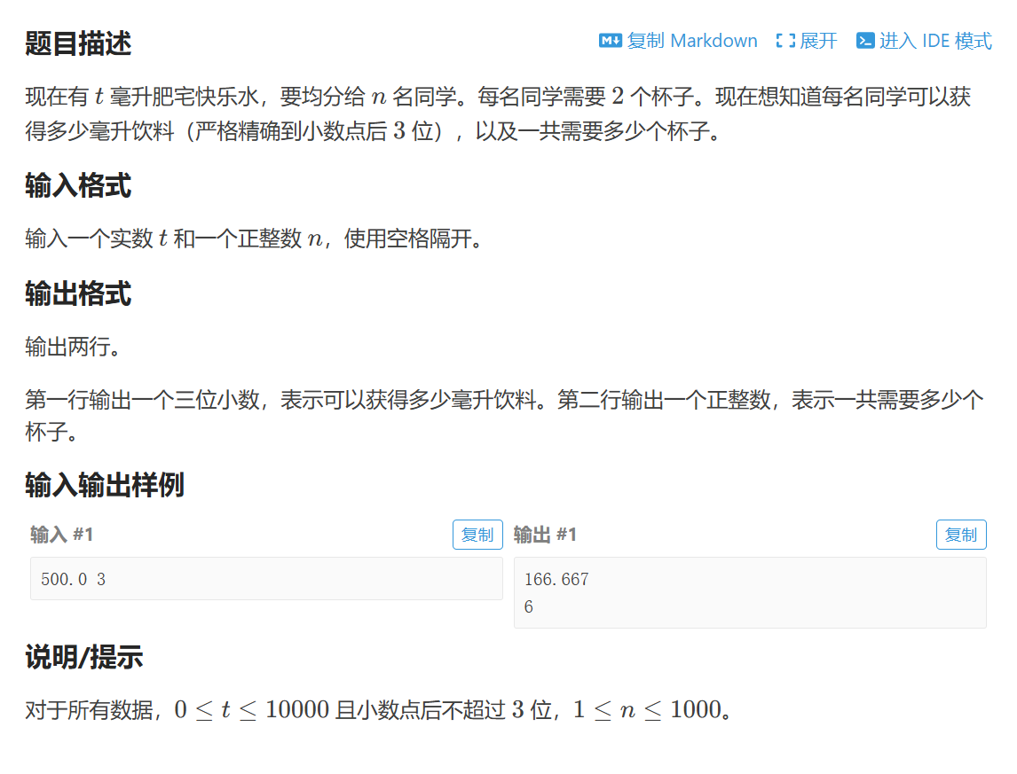 二、P5706 【深基2.例8】再分肥宅水 - 洛谷