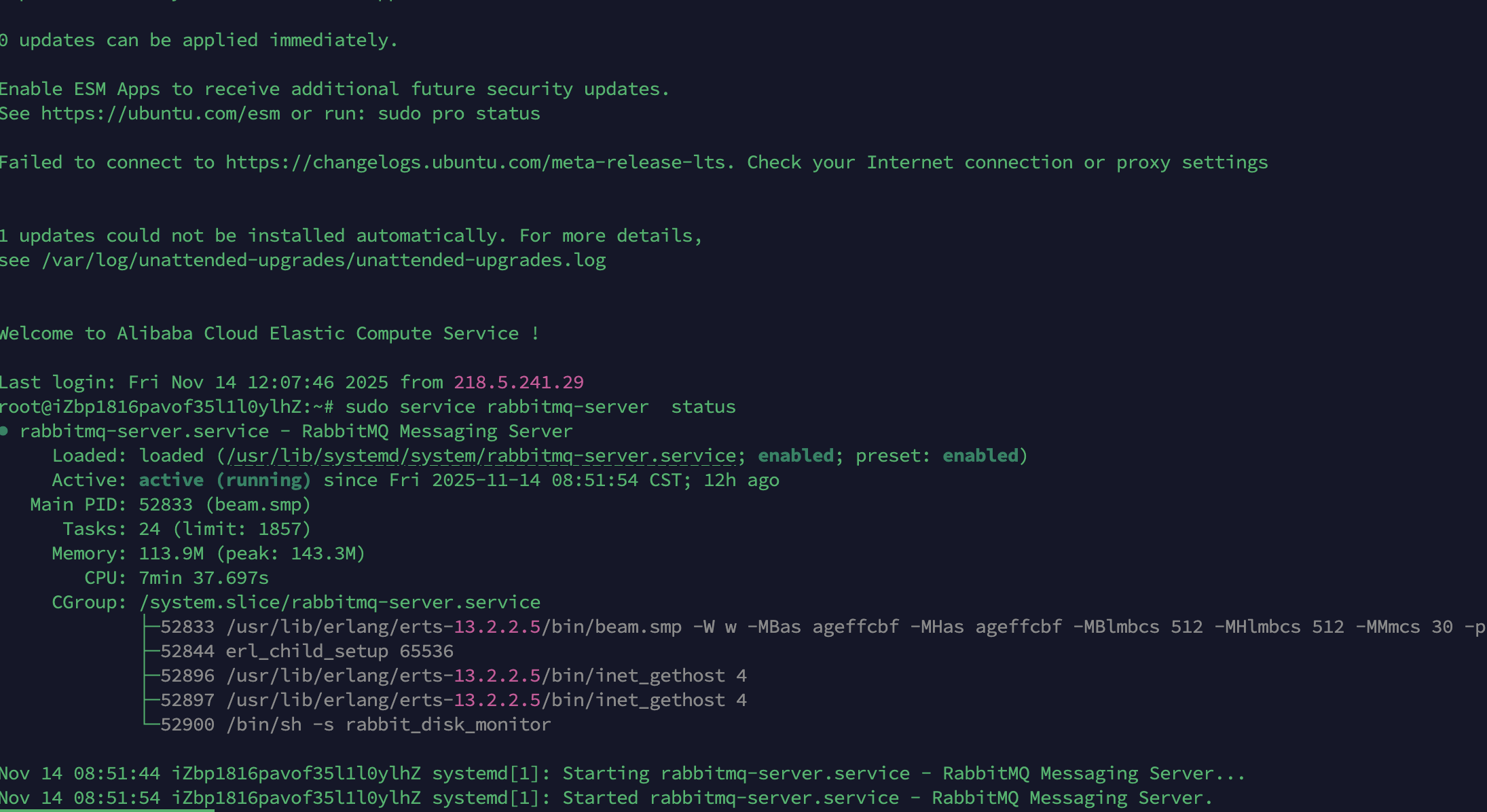 sudo systemctl status rabbitmq-server # 检查服务状态