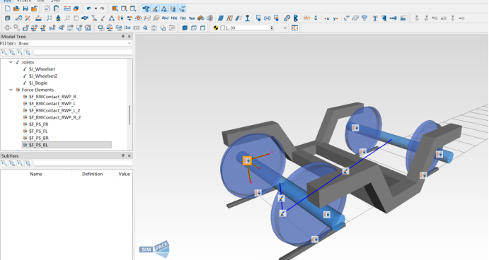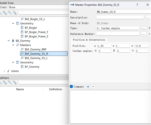 创建轮对,先建立右侧R,negative,轮对向前运动,轮对绕Y轴旋转是负方向的