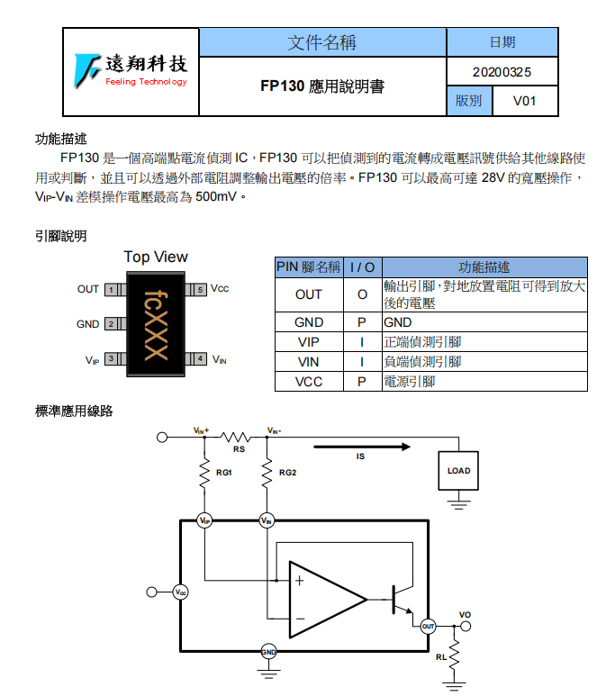 电流检测放大器IC 汽车前装无线充电模块应用 FP130A