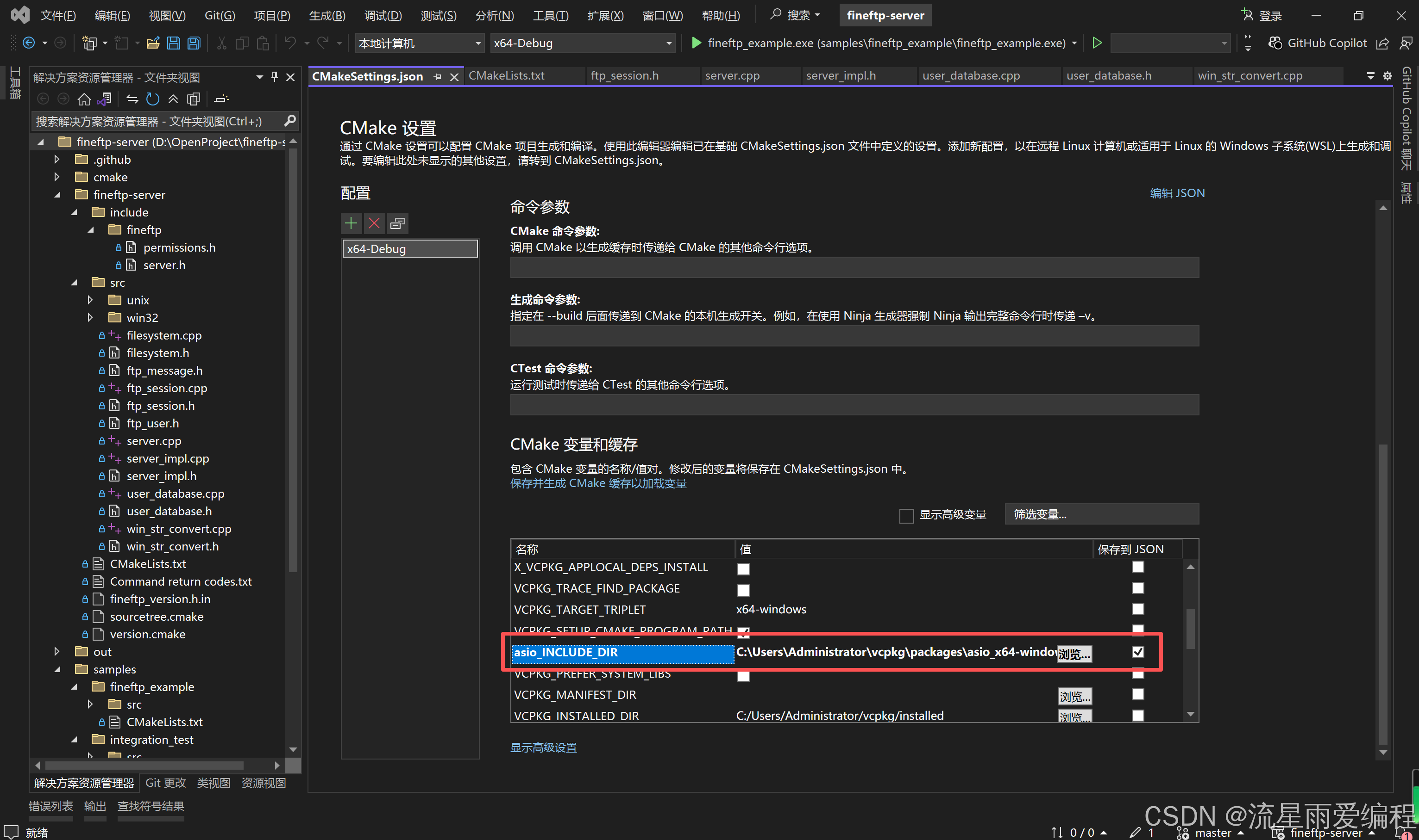 进入vs2022,配置的时候会提示找不到asio,再配置一下asio的路径: