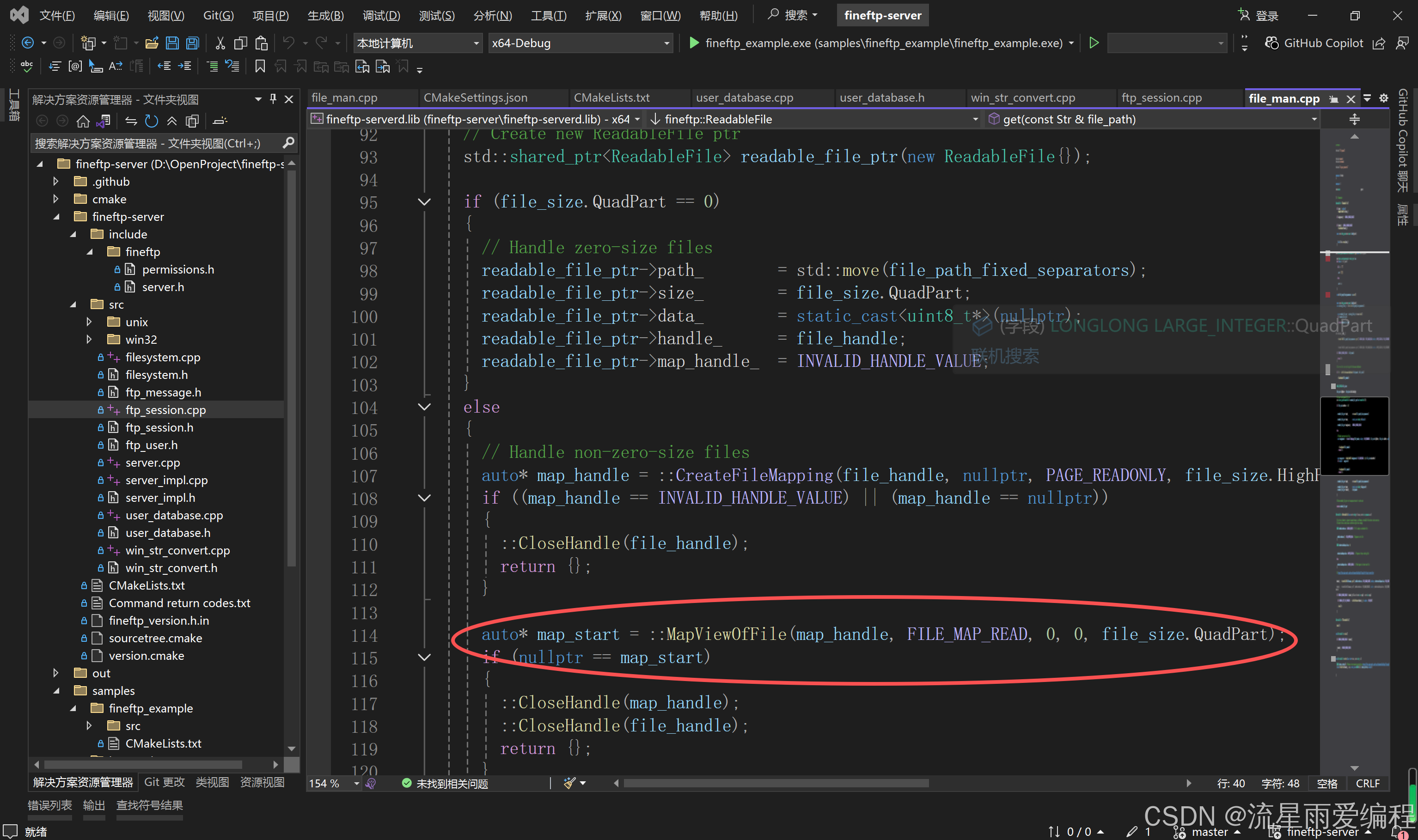 在windows上发送 REST指令的时候,偏移大小一定要是64K的整数倍。那是因为fineftp-server内部读取文件是用的内存映射,函数MapViewOfFile的文件偏移量未对齐,偏移量必须是 64KB (0x10000) 的整数倍,这是 Windows 内存映射的基本粒度要求。