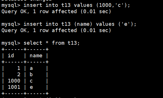 insert into t13 (name) values ('a');