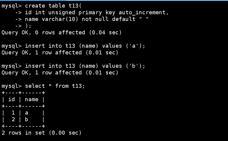 insert into t13 (name) values ('b');