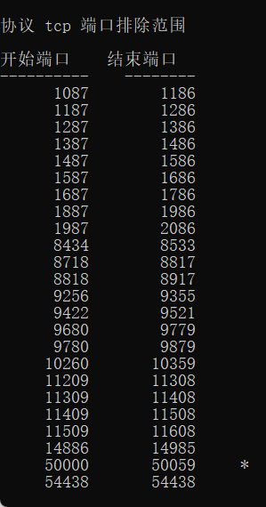 netstat -an | findstr 9848可以考虑通过下方指令显示被系统保留或排除的TCP端口。