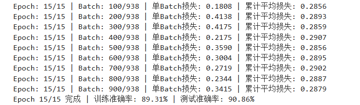 最终准确率为90.86 %,累计平均损失为0.2879