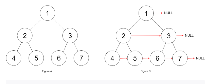 }填充它的每个 next 指针,让这个指针指向其下一个右侧节点。如果找不到下一个右侧节点,则将 next 指针设置为 NULL。