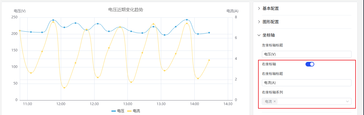 如果两个指标,并且这两个指标值具有数据量级的差距,则可以开启双 Y 轴:
