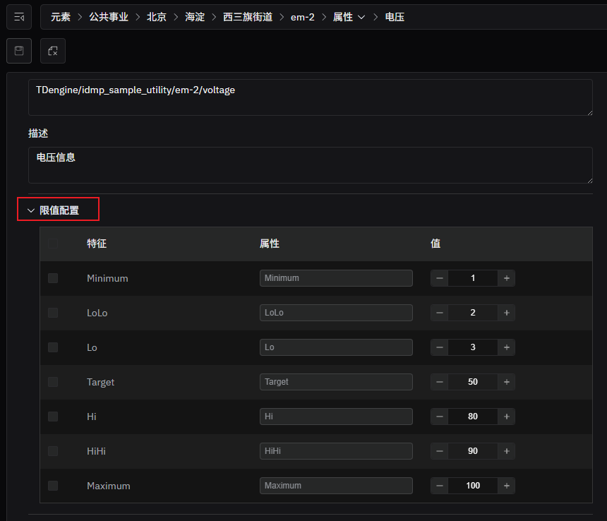 在设置边界值时,我们需要先选择一个参考指标,选择参考指标时,会将该属性对应的限制配置带到此边界值配置中。