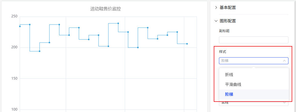 数据变化具有阶段性、非连续性的业务场景,可以配置趋势图的样式: