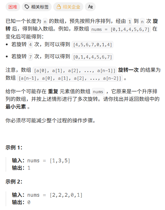 LeetCode 刷题【154. 寻找旋转排序数组中的最小值 II】
