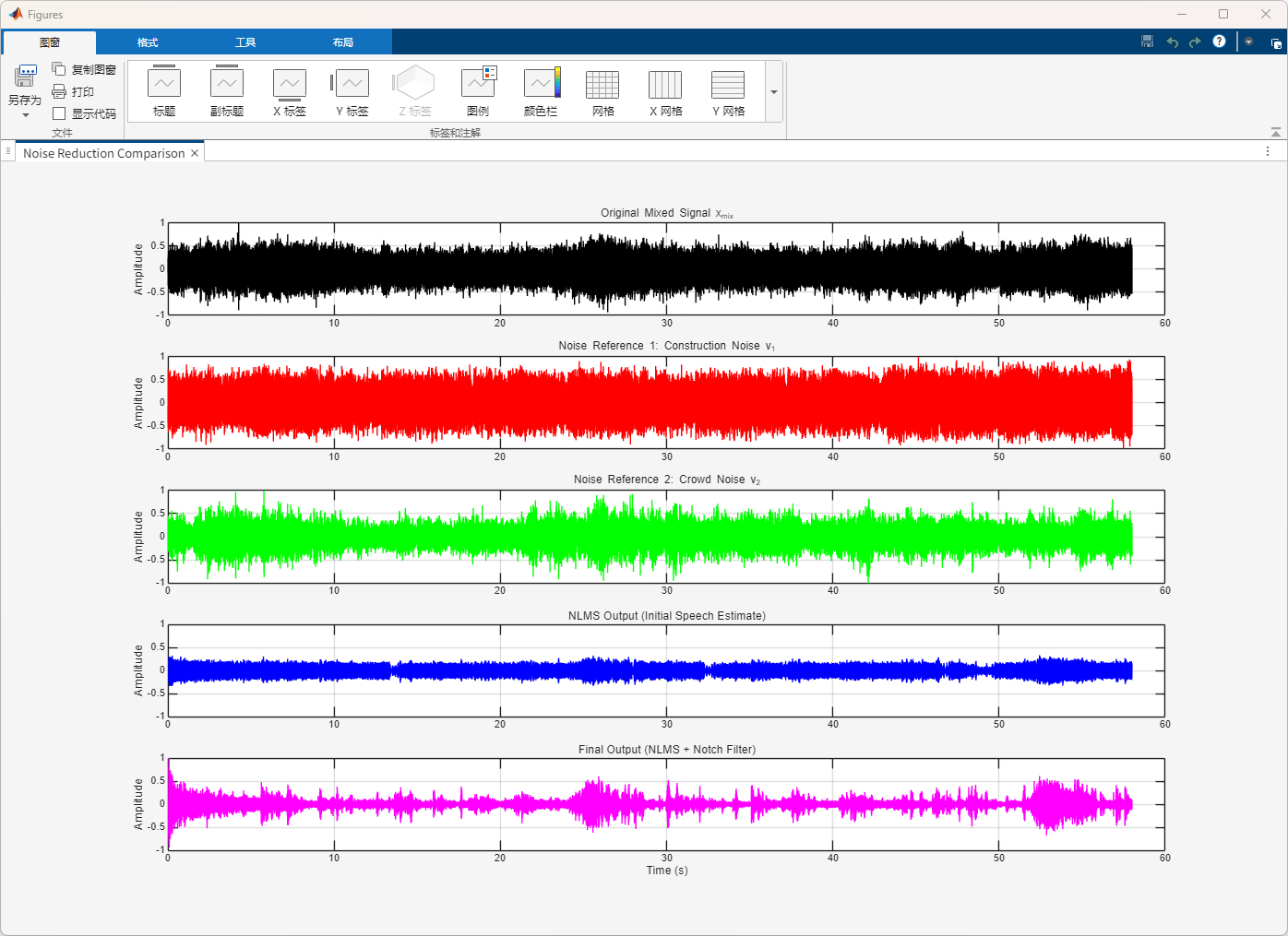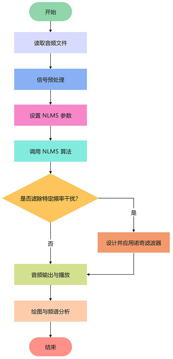 实验结果表明,结合NLMS和诺奇滤波器的噪声消除方法在提升语音信号质量、减少噪声干扰方面具有显著效果。此外,本文还探讨了不同算法参数对噪声消除效果的影响,并提出了优化策略。最后,本文的研究为实时噪声消除系统的设计与实现提供了理论依据和实践指导。