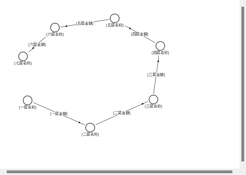 3.设置实体、连接及方向:将各层名称依次拖拽至各个实体,将各层金额拖拽至各个连接,并将连接方向设置成单向,如图所示: