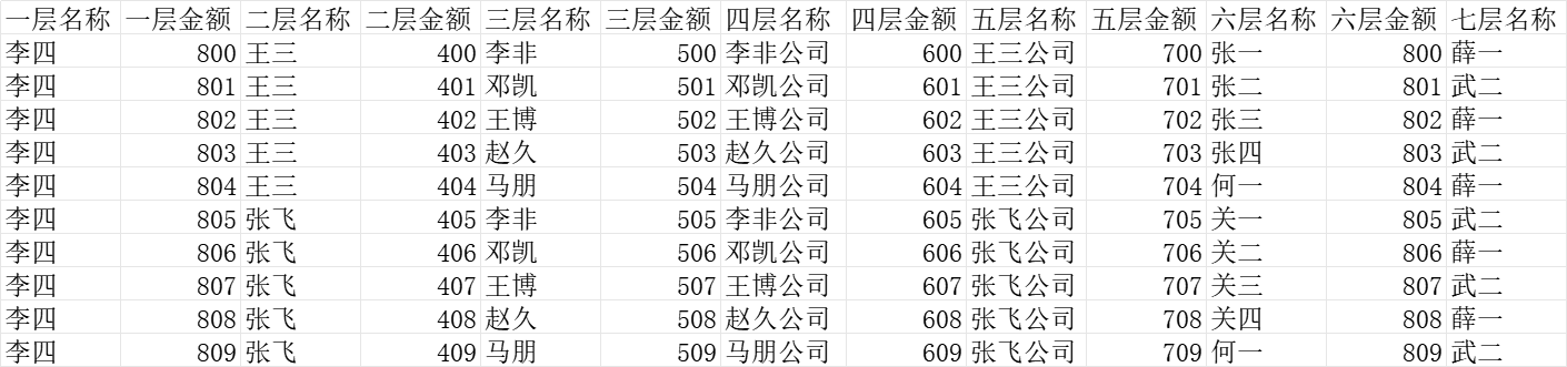 前言:本文将介绍如何用i2绘制资金链路,原始数据表格如下: