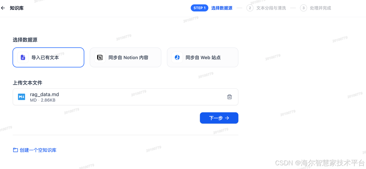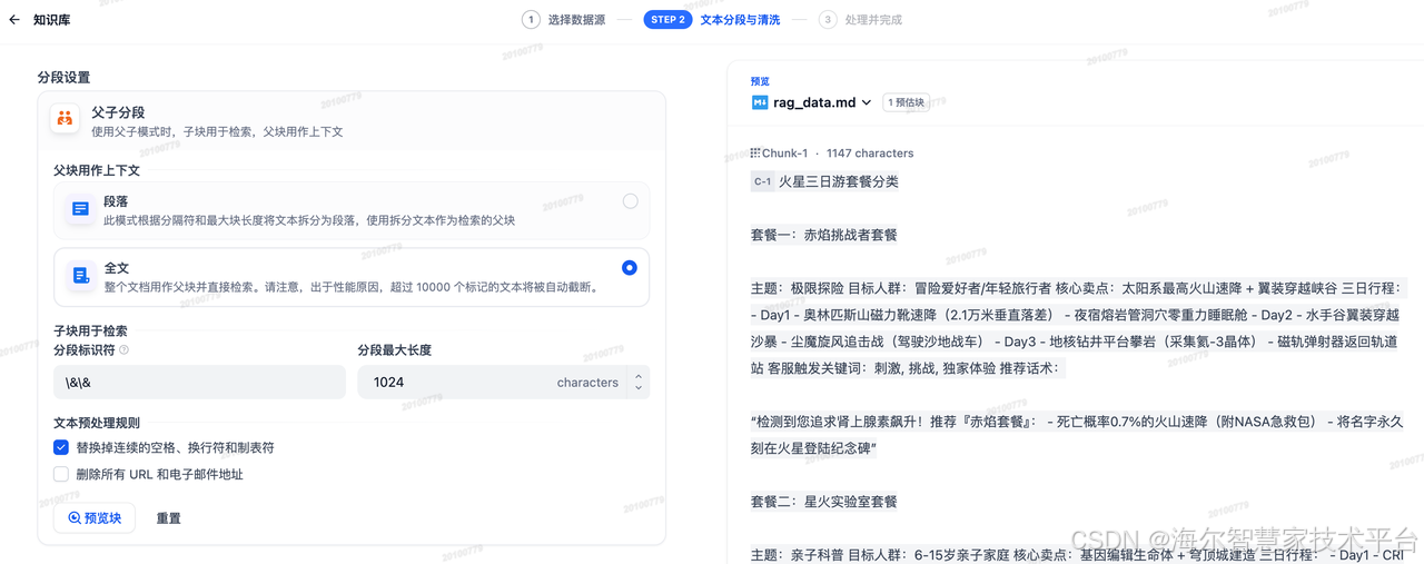 创建知识库,将 markdown 文档保存的“火星三日游”套餐信息导入