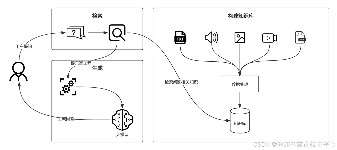 这个知识库可以是:文档数据库、维基百科、企业内部文档、产品手册、代码库、知识图谱等任何结构化和非结构化数据。