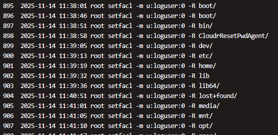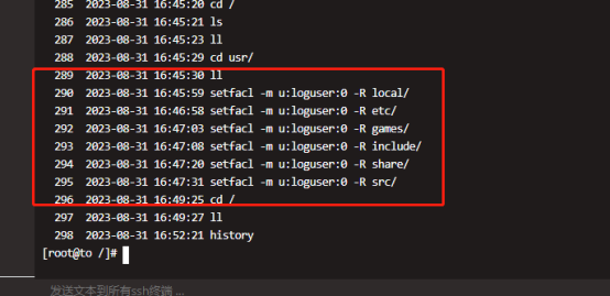 setfacl -m u:loguser:rx /home/cd /home/setfacl -m u:loguser:rx -R logs/这样就配置好了