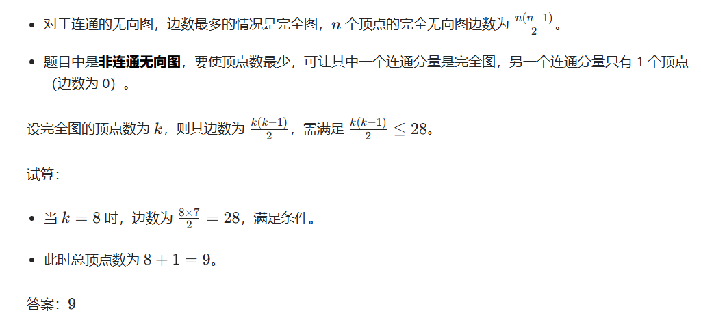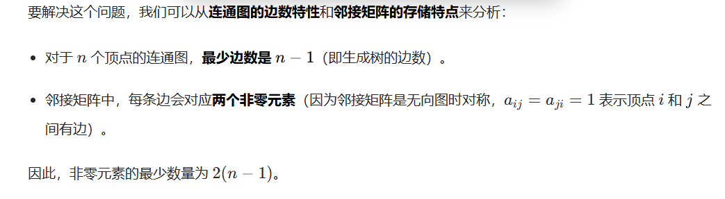 - 强连通图要求任意两个顶点之间都能互相到达。对于 n 个顶点的强连通图,最少的结构是形成一个有向环。