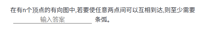 - 有向环中每个顶点都有一条入弧和一条出弧,因此至少需要 n 条弧。