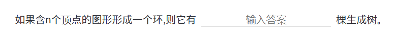 - 一个含 n 个顶点的环,要构造生成树(含 n - 1条边且连通无环),只需删除环中的任意一条边即可。