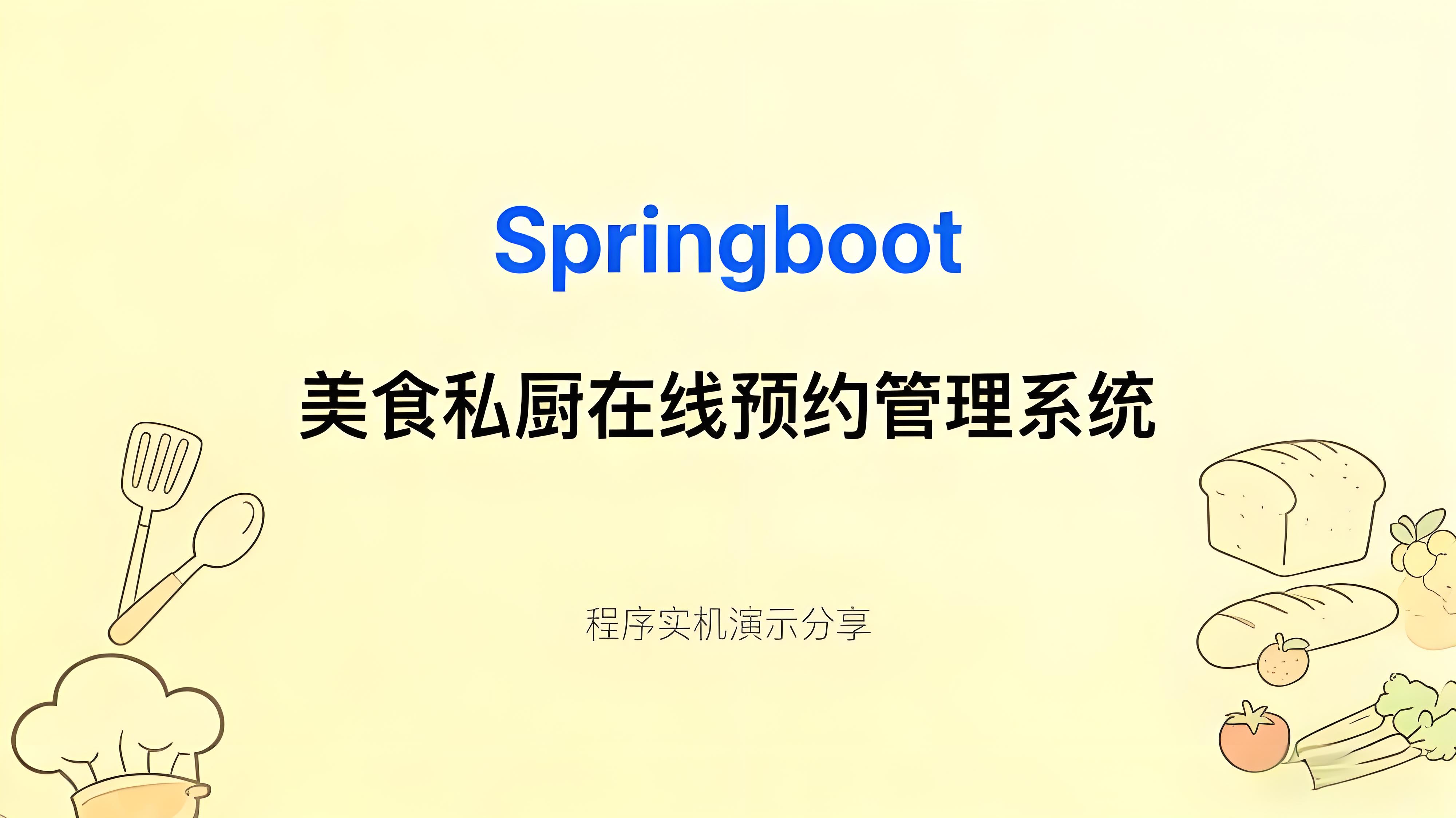 完整的软件系统: 一个可运行的“基于SpringBoot的美食私厨在线预约管理系统”原型。