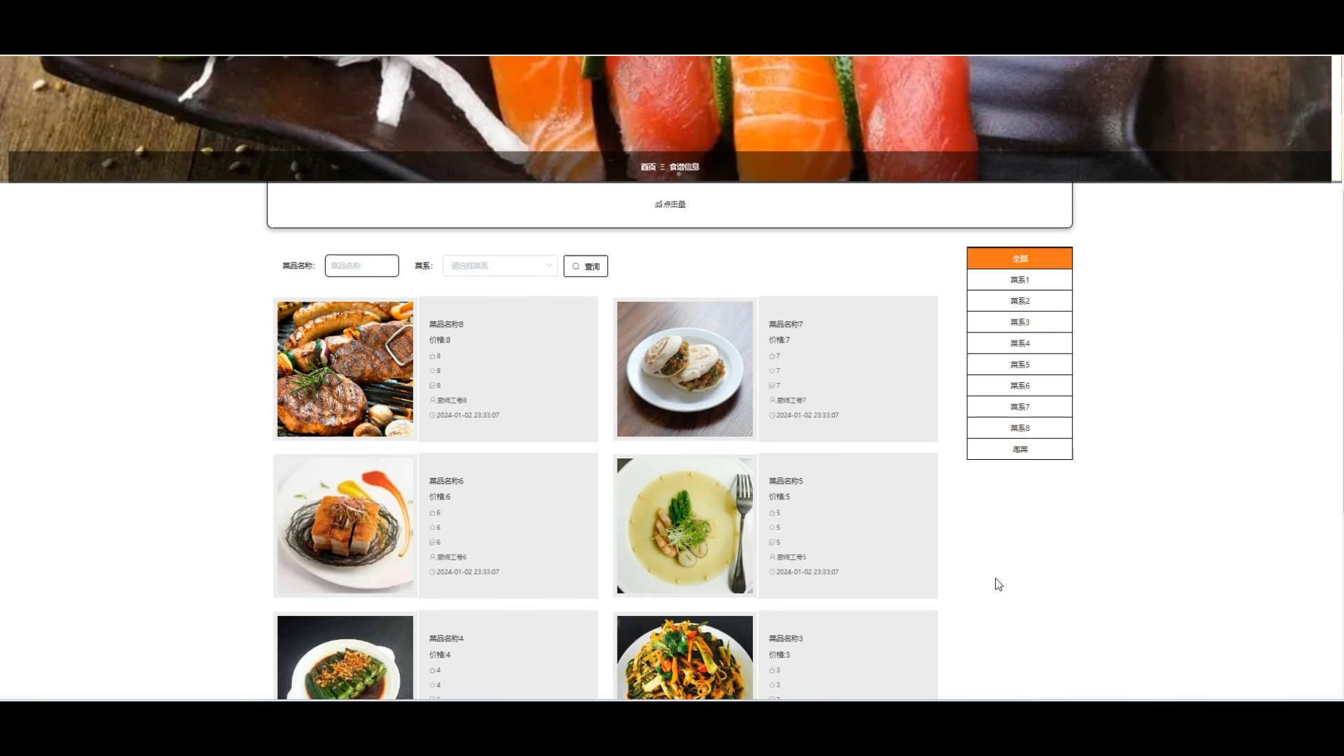 私厨浏览与搜索: 列表展示、分类筛选、关键词搜索、排序。