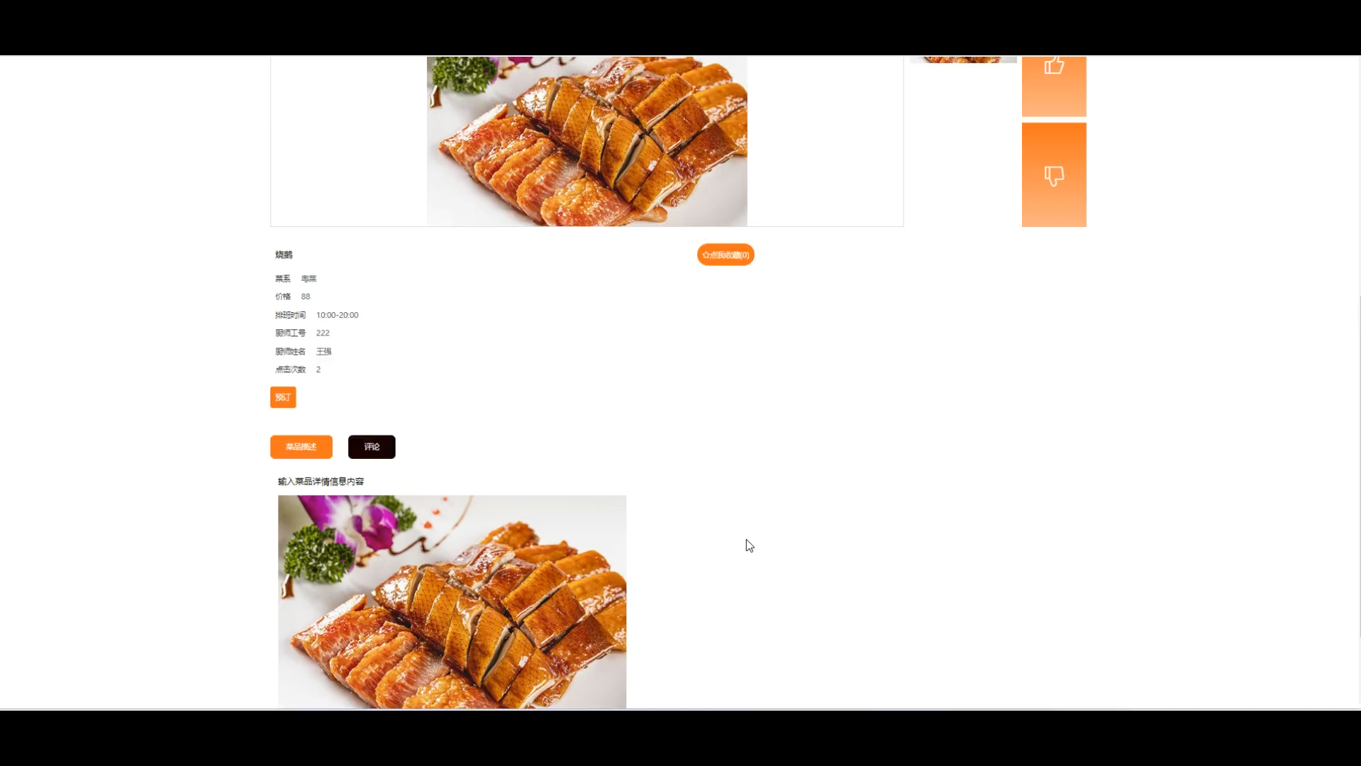 私厨详情: 展示厨师介绍、菜品展示、环境照片、用户评价。