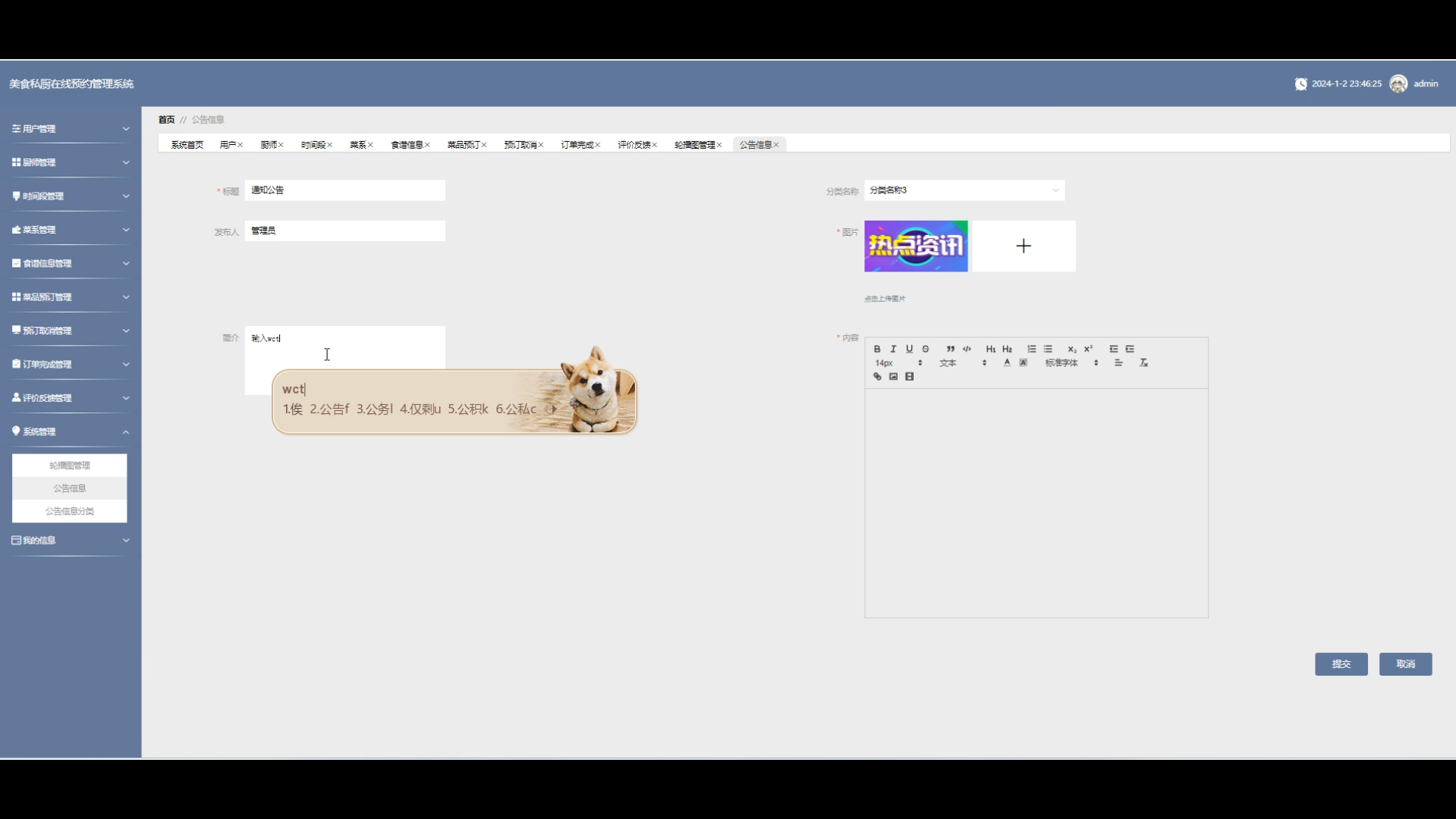 论文题目: 基于SpringBoot的美食私厨在线预约管理系统的设计与实现