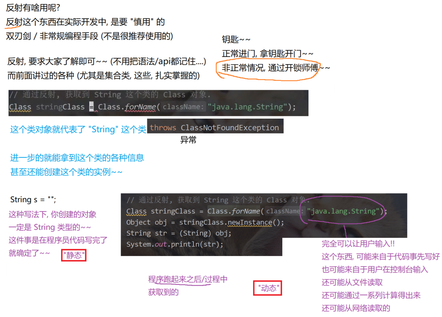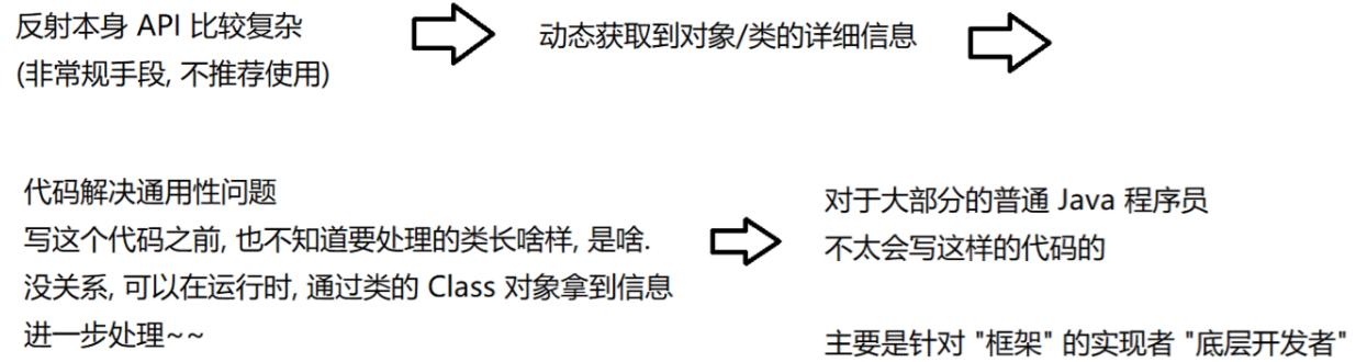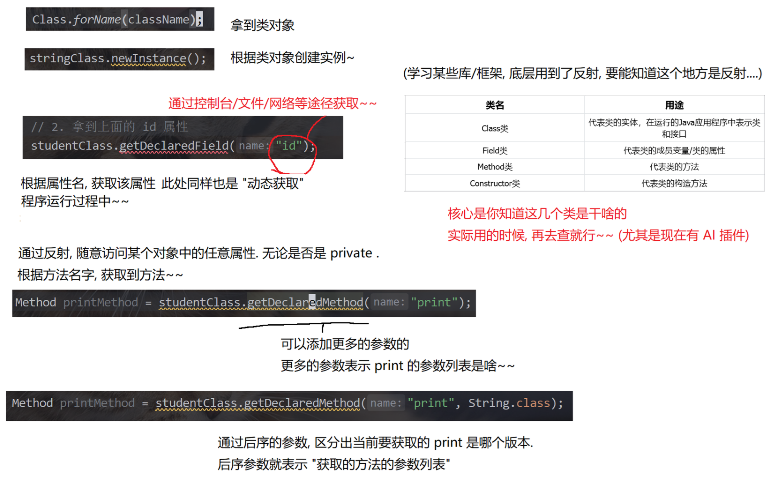 用途(了解) :框架开发、注解处理、动态代理、配置文件解析等等