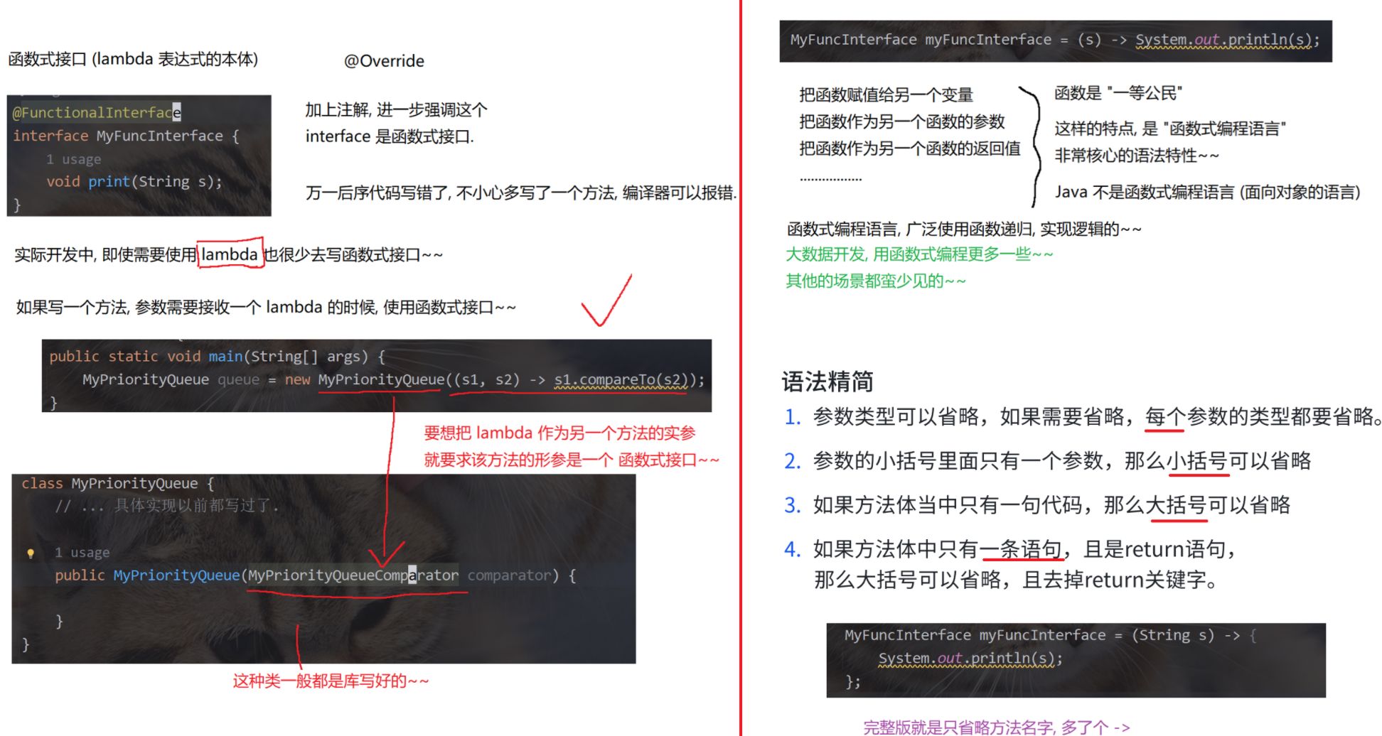 // };MyFuncInterface myFuncInterface = (s) -> System.out.println(s);myFuncInterface2.print("Hello, world!", 100);}