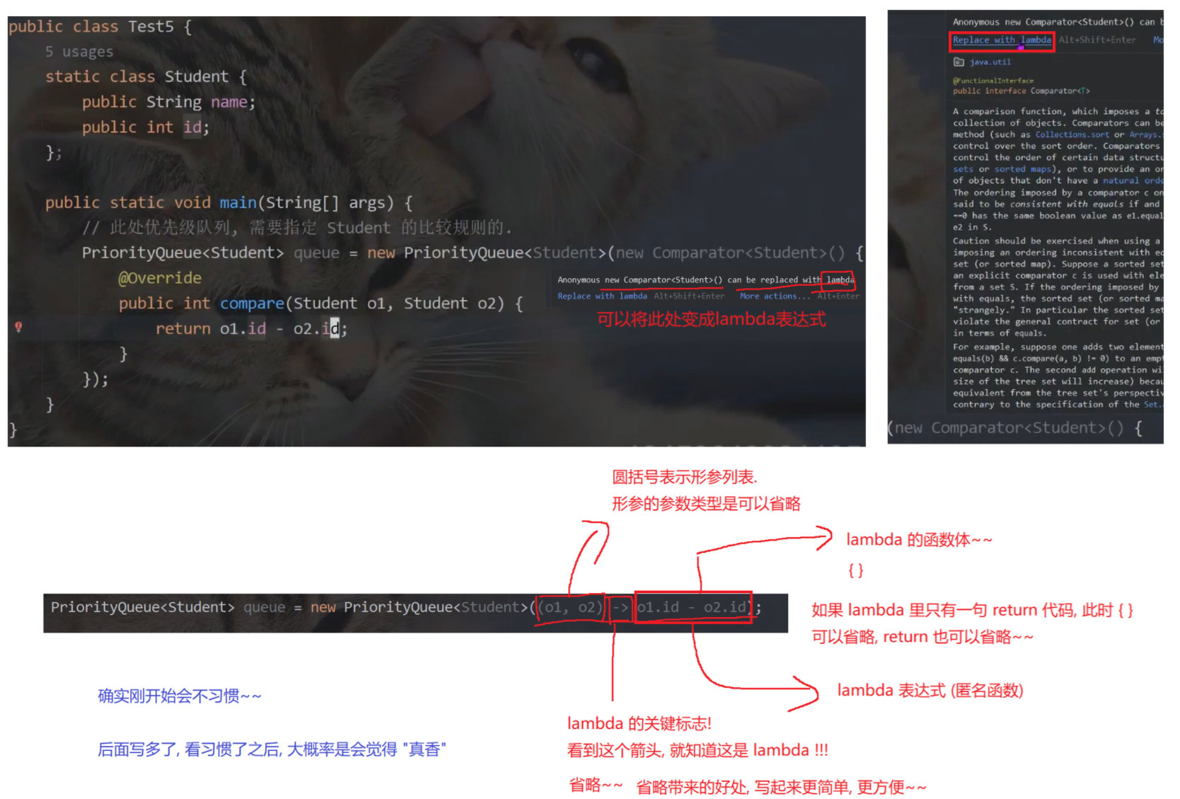 基本语法:(parameters) -> expression 或 (parameters) -> {statements;}