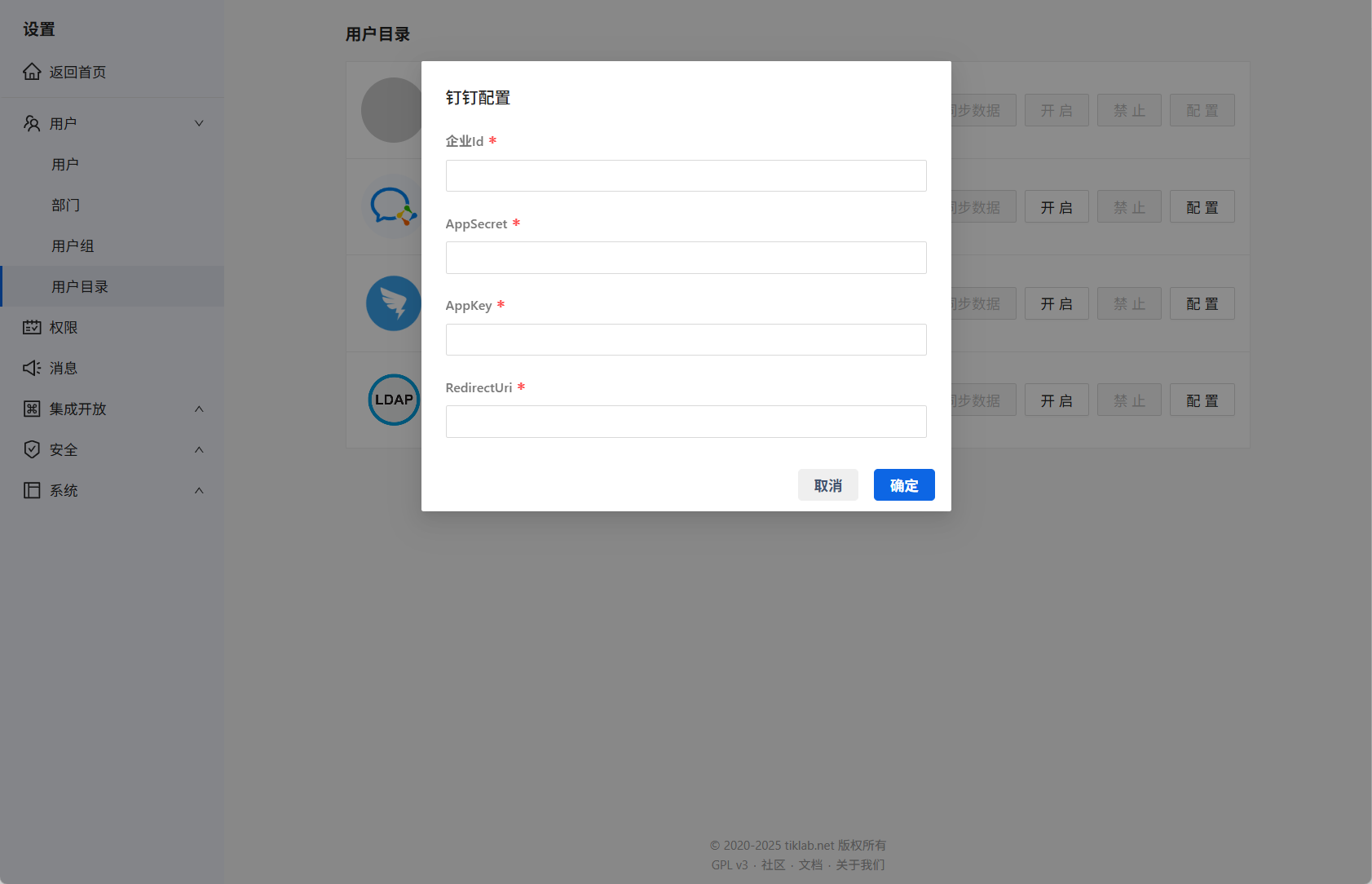 - 钉钉、企业微信等账号集成、登入认证、消息通知调整为社区版本功能
