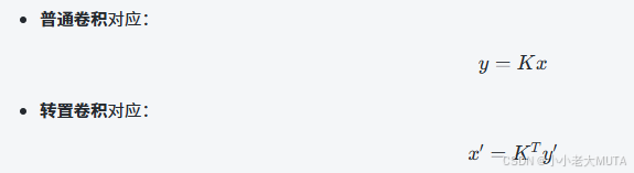 转置卷积的名称来源于它与普通卷积在矩阵乘法表现形式上的转置关系。