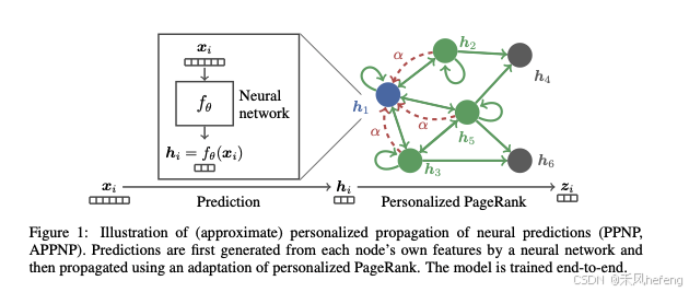 传统 GNN = “学习 + 传播” 绑在一起,而APPNP = “学习(MLP)” 和 “传播(PPR)” 分开做。传统 GNN的邻居传播为: ,特征变换为: