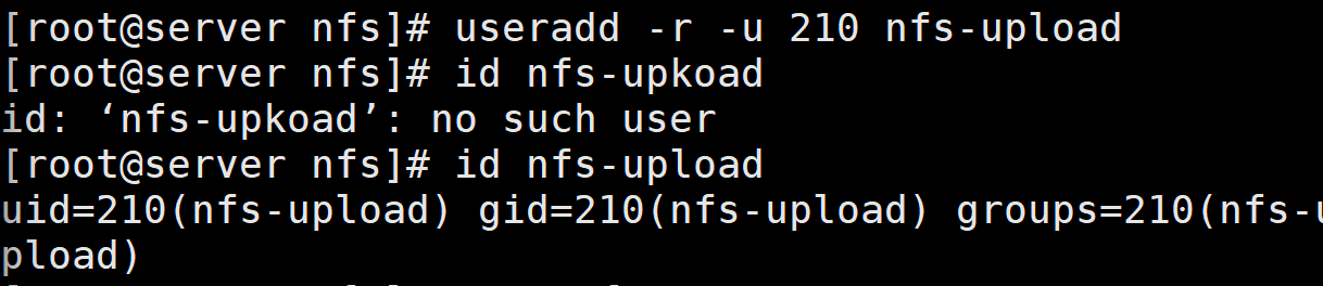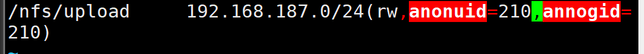 并将所有用户及所属的组映射为nfs-upload,其UID和GID均为210
