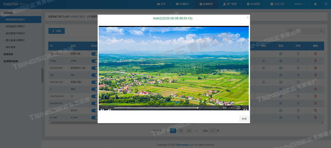 流媒体中枢(EasyDSS):EasyDSS作为核心枢纽,可同时接收来自景区内多个点位的无人机推流,实现“一平台,多视角”管理,自动将视频流转码成多种码率和格式,确保无论用户使用的是高速Wi-Fi还是移动4G网络,都能获得流畅的观看体验。