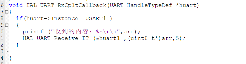 中断回调函数:void HAL_UART_RxCpltCallback (UART_HandleTypeDef *huart)