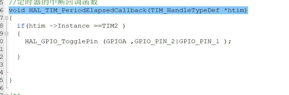 定时器回调函数:HAL_TIM_PeriodElapsedCallback(TIM_HandleTypeDef *htim)