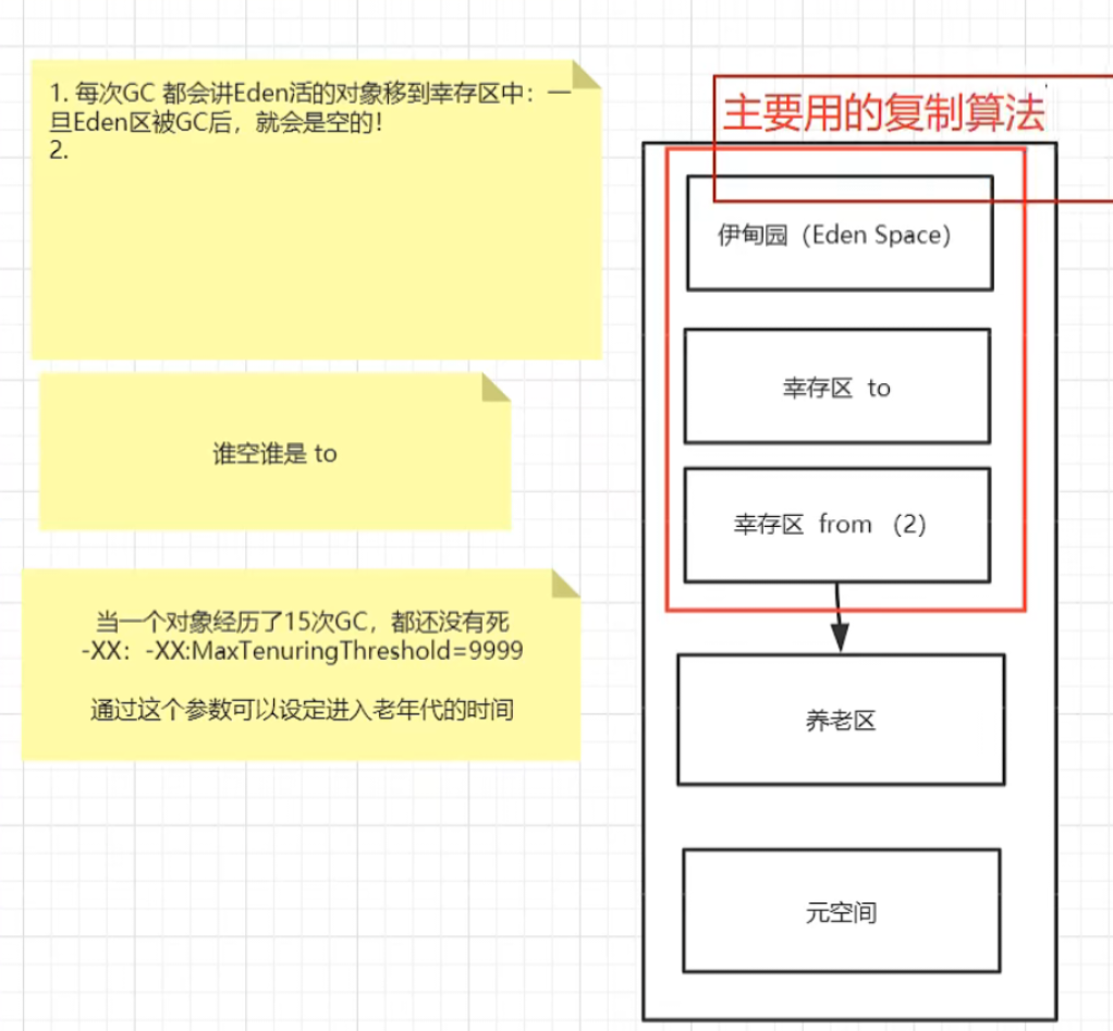 复制算法最佳使用场景:对象存活度较低的时候;新生区~