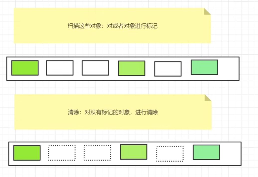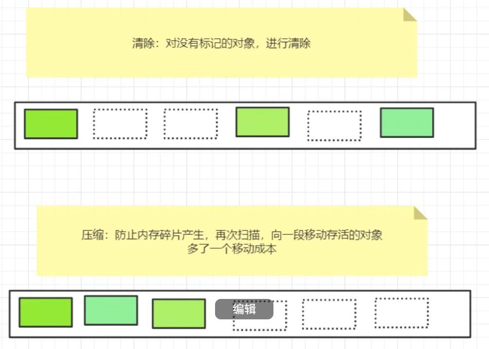 ●缺点:两次扫描,严重浪费时间,会产生内存碎片。