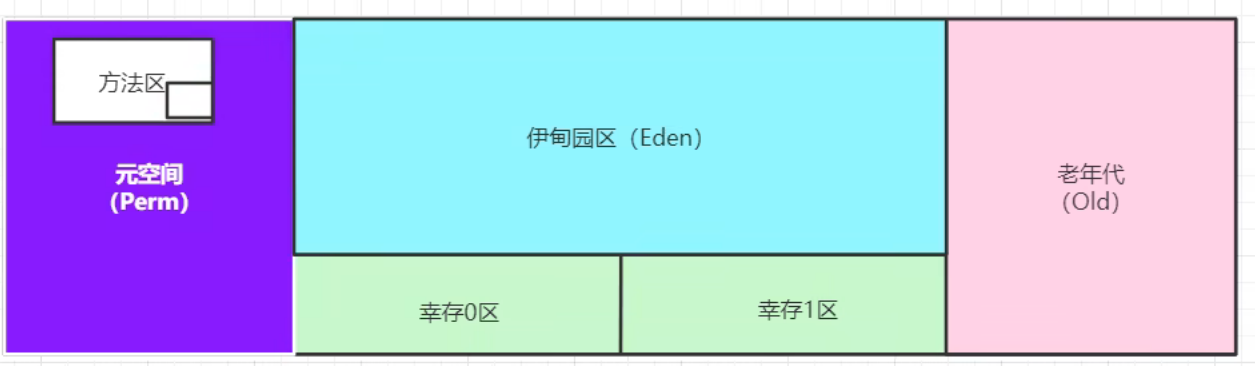 1.Heap,一个JVM只有一个堆内存,堆内存的大小是可以调节的