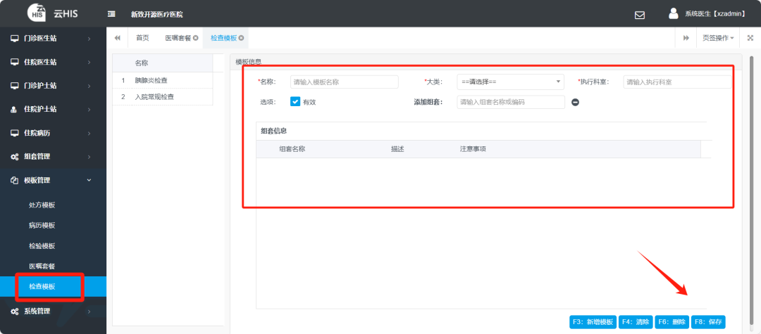 6.点击左侧菜单栏【检查模板】,添加新模板时,直接填写【模板信息】,点击【保存】,新建模板成功。