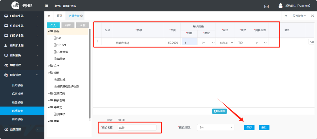 本篇产品操作教程将为您介绍如何使用【OpenHIS医院系统】之【医护协同系统】进行【设置处方模板】。