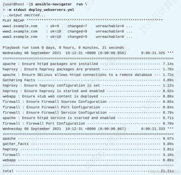 以stdout模式运行site.yml剧本,输出可能会像这样: